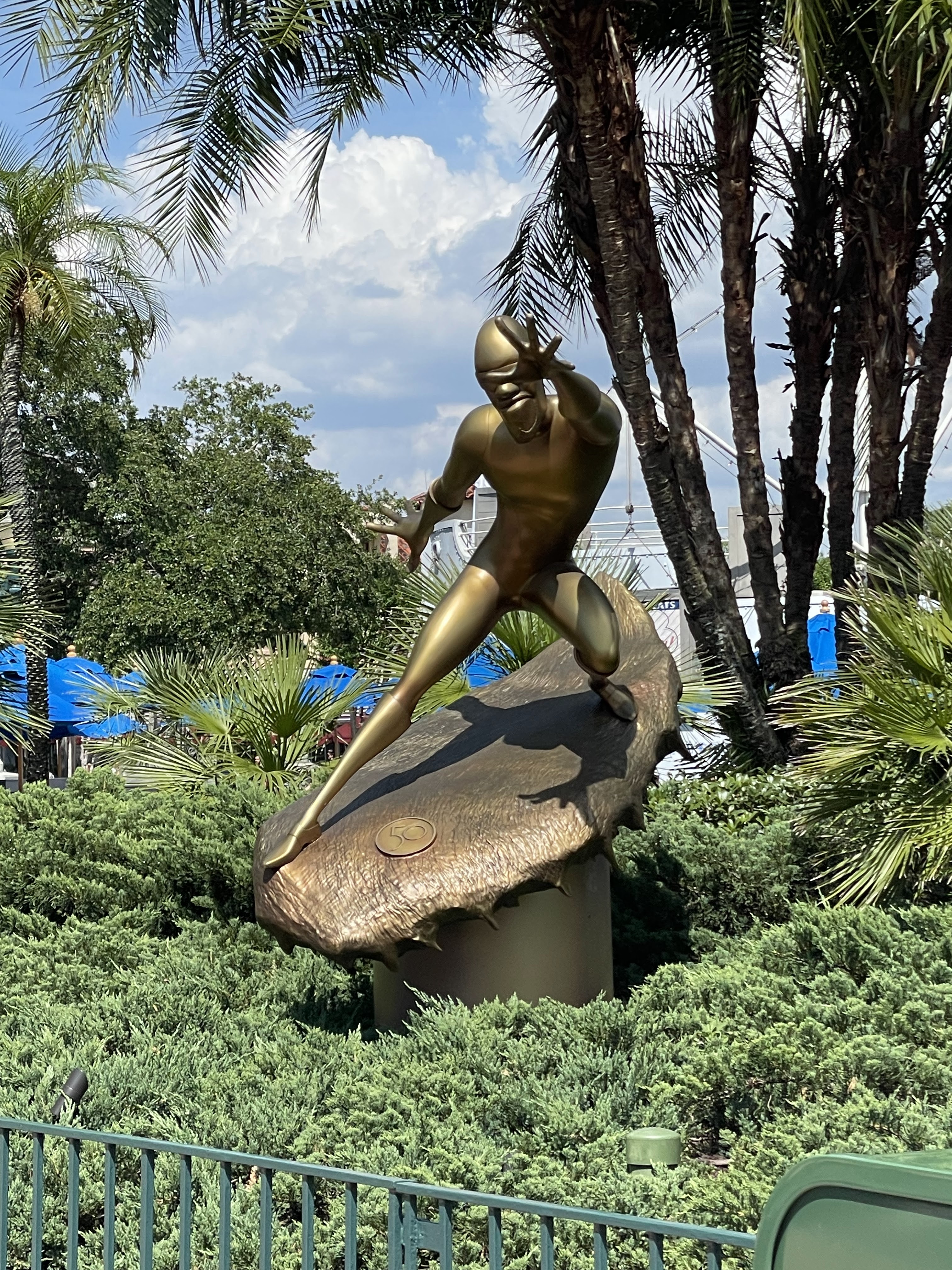 Once the ride was finished and sunscreen was re-applied, we took a short walk around the central area to see all of the 50th Anniversary statues (7 statues, 9 characters AA kept saying to himself).