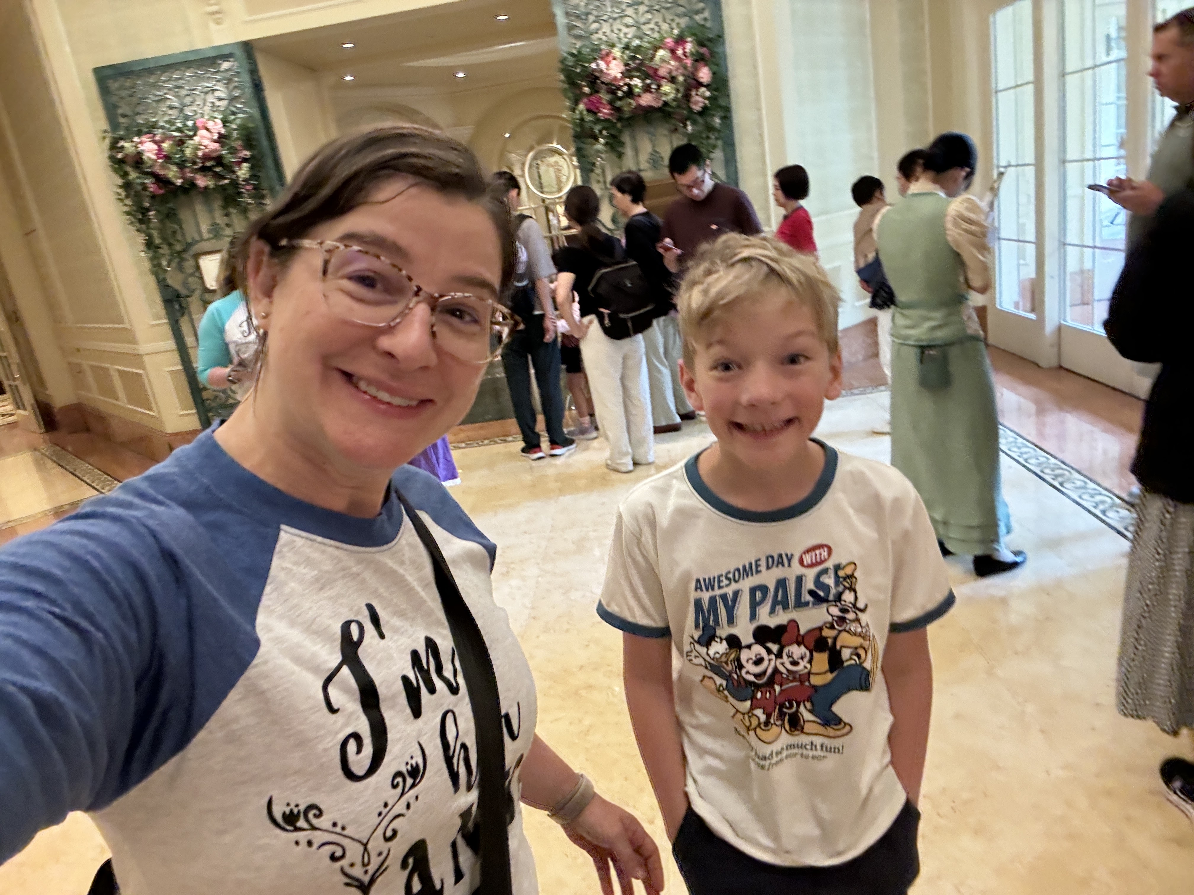 First up breakfast at the hotel, Lola had booked reservations for the buffet at the hotel. And we were early enough to see all the Disney/mickey themed food before people ate it all. It was an early morning of 7:30am. Lola didn’t get any photos of us at the table, but a few of our mickey plates.